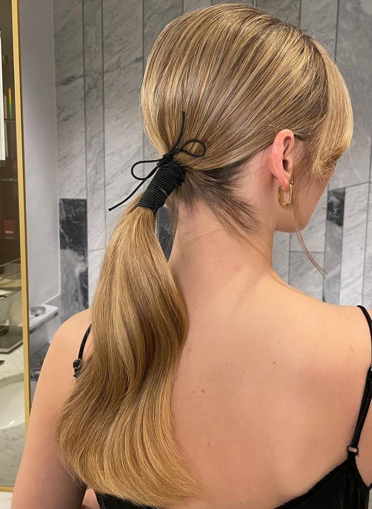 Tóc đuôi ngựa là kiểu tóc vô cùng linh hoạt khi có thể biến tấu để phù hợp trong các dịp hằng ngày đến những sự kiện sang trọng. Mái tóc được dưỡng bóng mượt, chải gọn với keo và định hình phía sau bởi những phụ kiện như nơ sa tanh, cài tóc kim loại, ruy băng dây nơ,… Kiểu tóc còn được biến tấu với các kiểu tóc đuôi ngựa khác nhau như đuôi ngựa lật ngược, đuôi ngựa xoăn nhẹ, hoặc kết hợp với bím tóc để tạo nên điểm nhấn.