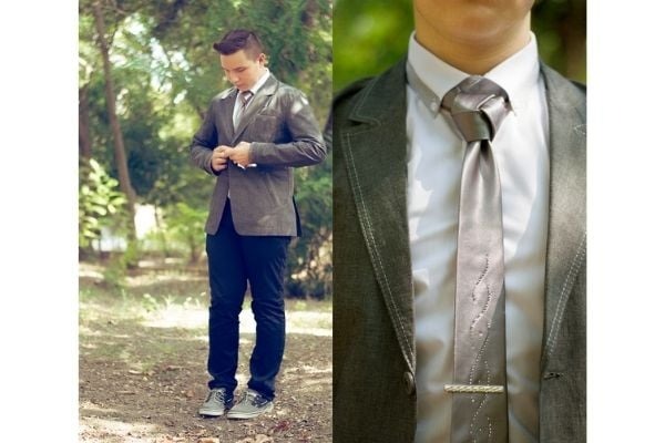 Cần kết hợp với áo len, áo vest hoặc áo khoác cài khuy để giấu đuôi cà vạt vào trong áo