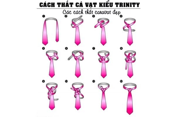 Thêm 1 phong cách thắt caravat không kém phần nổi trội, kiểu thắt cà vạt Trinity cũng có tạo hình độc đáo khi nó tạo ra 3 góc cân xứng thay vì 1 góc thẳng như các nút thắt thông thường. Khi thắt xong, bạn sẽ thấy nút thắt có kích thước khá lớn tao điểm casual cho phong cách Trinity