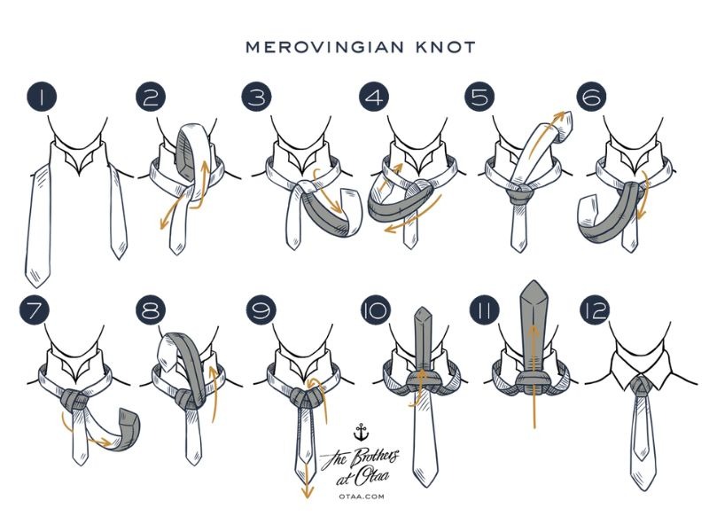 Với vẻ ngoài nổi bật và hiệu ứng thị giác ấn tượng, Merovingian được xem là đỉnh cao của các kiểu nút thắt cà vạt. Kiểu Merovingian có những bước thắt đầu tiên tương tự như kiểu Windsor. Tuy nhiên, điểm đặc biệt của Merovingian nằm ở chỗ phần vạt nhỏ mỏng thường được “giấu” phía sau của cà vạt được đưa ra phía trước, tạo cảm giác bạn đang đeo đến 1 chiếc cà vạt - 1 chiếc lớn, 1 chiếc nhỏ.