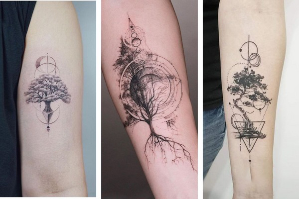 Nếu thấy không có hứng thú với hình cây cối thông thường, bạn có thêm tham khảo những mẫu hình xăm cây cối kết hợp cùng phong cách xăm hiện đại. Mẫu hình xăm này không quá kén vị trí nên bạn có thể thoải mái khi lựa chọn hình.