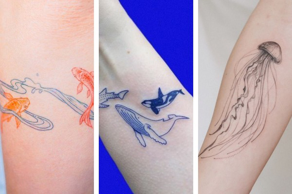 Nếu vẫn muốn lựa chọn các hình xăm liên quan đến nước, biển, cá nhưng không yêu thích Nhật cổ thì những hình xăm với kích thước nhỏ về các loài sinh vật biển cũng rất thích hợp với bạn.