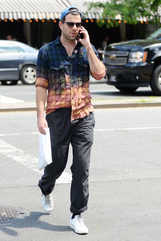 Khi tổng thể bộ trang phục của bạn đi theo một chiều hướng phong trần, bụi bặm với quần ống suông, đóng thùng một bên vạt áo, chất vải nhăn đặc trưng, thì một chiếc gấu áo được cuộn một các gọn gàng, chỉn chu lên tới phần khuỷu tay như Zachary Quinto sẽ giữ được vẻ tinh tế cho bộ cánh, tránh được sự luộm thuộm của một cậu trai lười biếng.