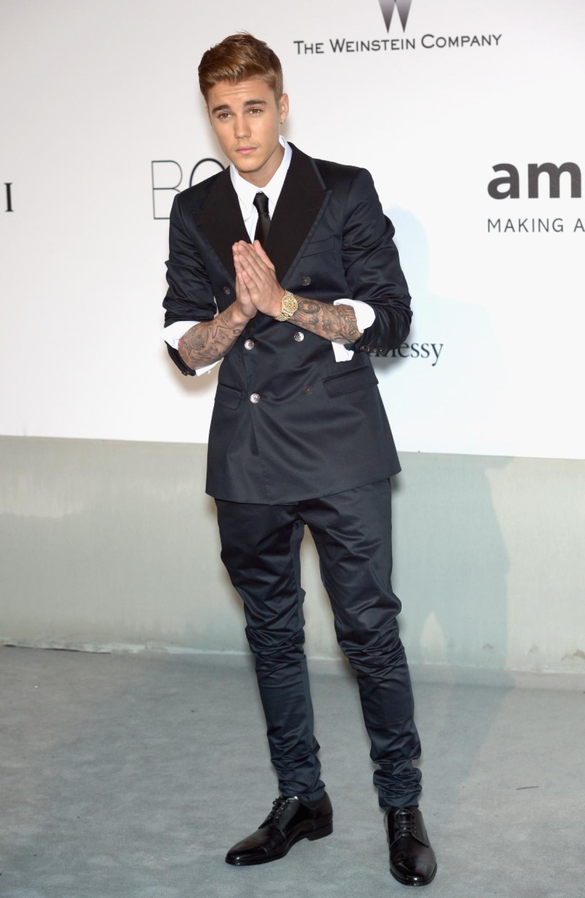 Nếu việc xắn tay áo mang lại cho bạn một diện mạo “phá cách” như nam ca sĩ Justin Bieber, chắc chắn là bạn đã đi quá xa. Đừng bao giờ xắn tay áo ra ngoài chiếc áo suit jacket. Đó là chưa kể, bộ suit của JB như một thảm họa, nhăm nheo luộm thuộm! Thật là một thảm họa!