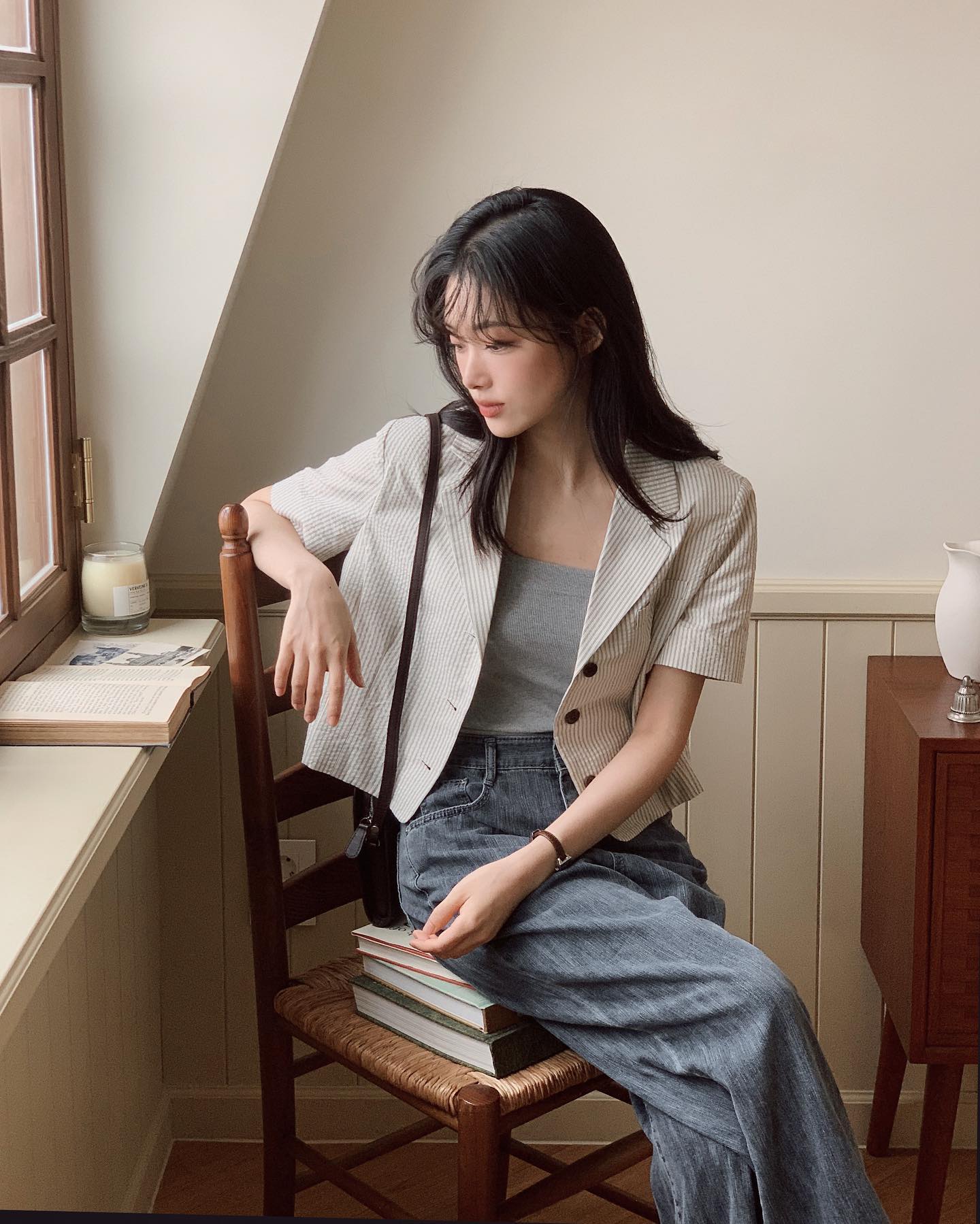 Mỗi khi bước sang mùa thu, áo blazer cộc tay lại phủ sóng phong cách của các quý cô sành điệu. Kiểu áo này mang đến sự thanh lịch, xen lẫn nét trẻ trung và năng động. Áo blazer cộc tay rất dễ mặc, bạn có thể kết hợp mẫu áo này với chân váy dài, quần âu thanh lịch hoặc quần jeans bụi bặm. Nếu "lười" phối đồ, một set áo blazer đồng bộ sẽ giúp bạn hoàn thiện phong cách sành điệu trong tích tắc. Không chỉ phù hợp để diện đến công sở, áo blazer còn là lựa chọn lý tưởng khi bạn lên đồ đi dự tiệc cưới.