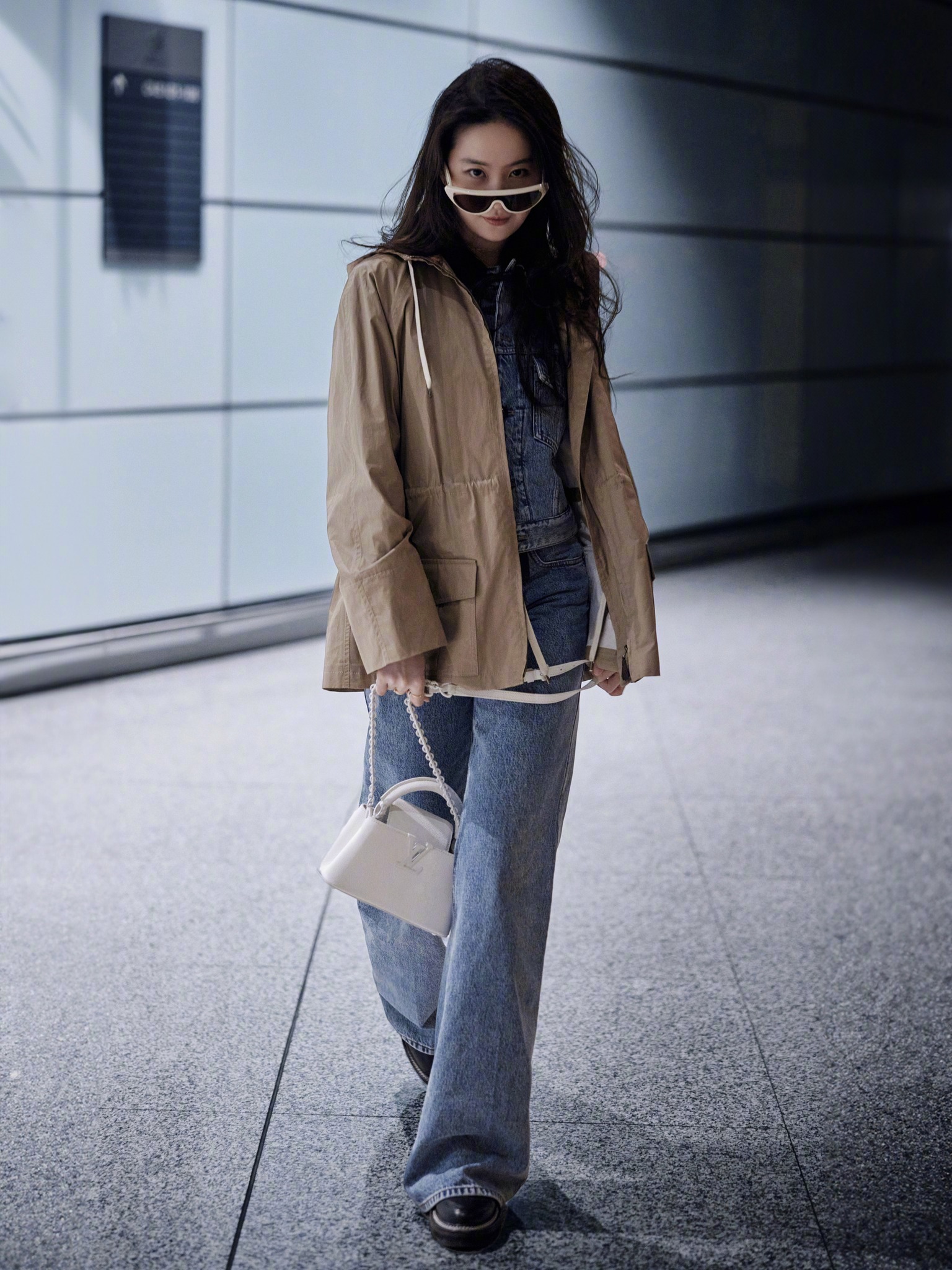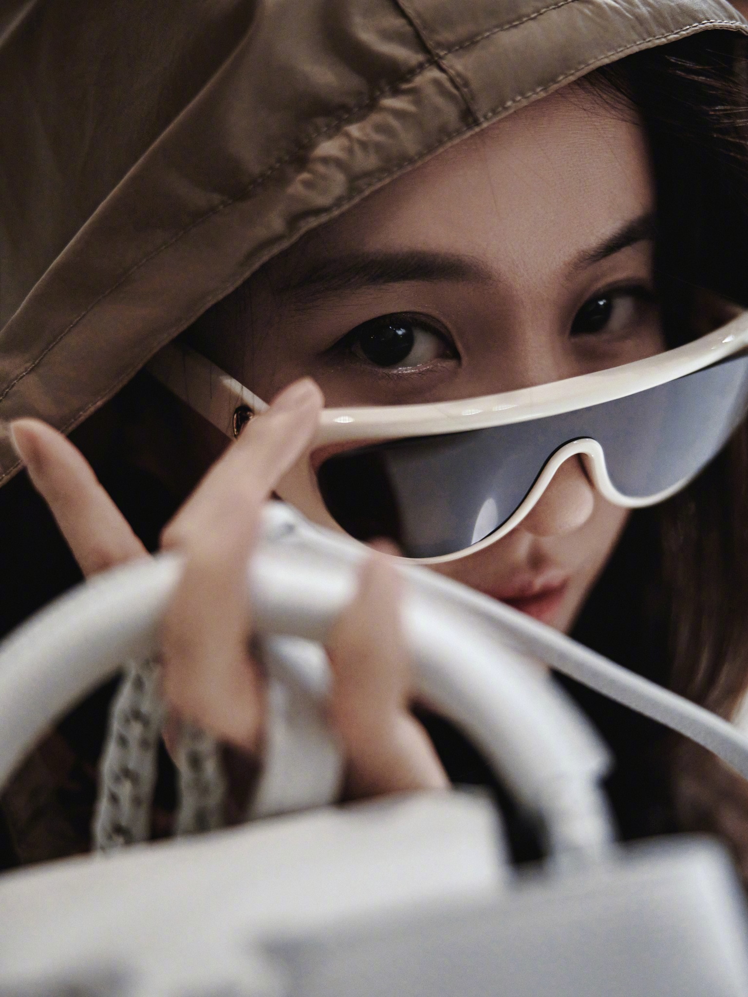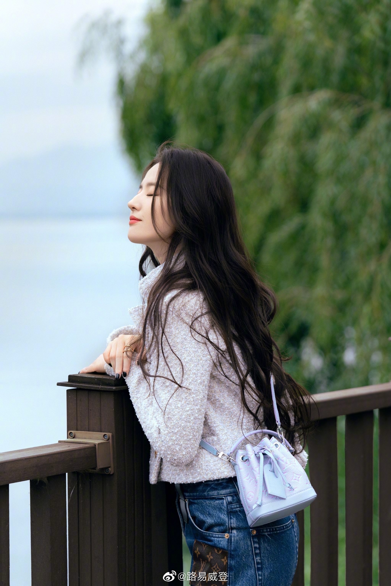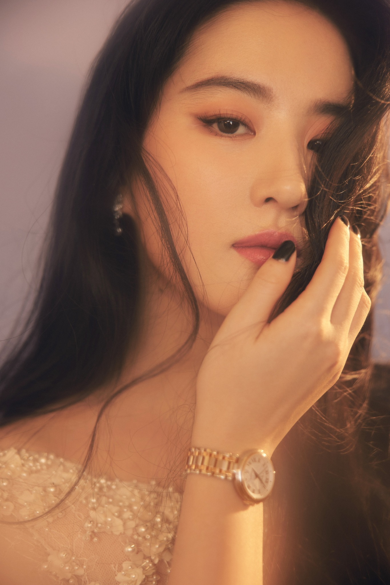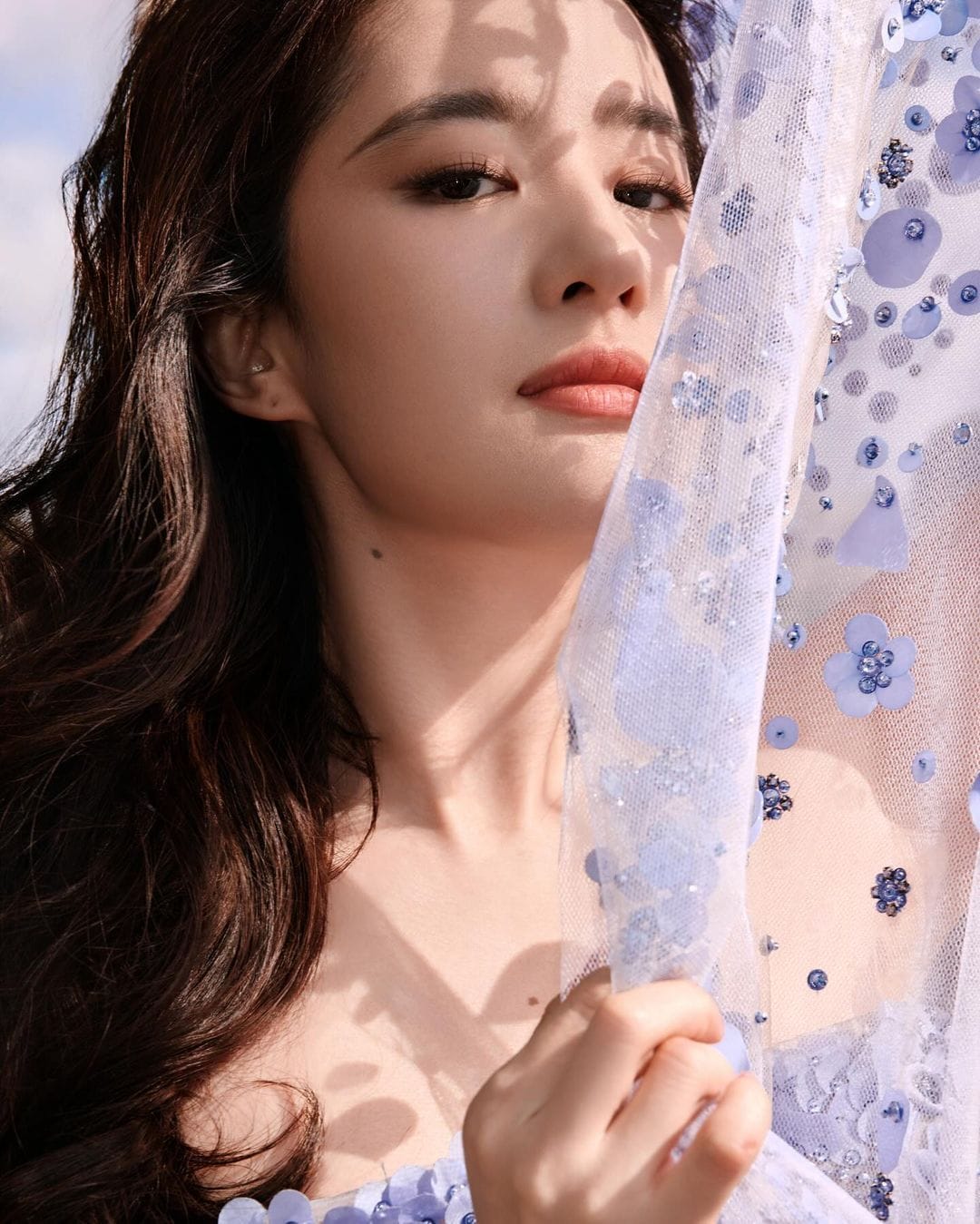 Đây là một trong những cách tạo dáng Lưu Diệc Phi hay sử dụng. Nếu như lên hình tạp chí, việc make up kỹ càng cũng giúp bức ảnh có chiều sâu và sắc nét hơn thì trong các shot hình khác, việc che mặt bằng tay hay các phụ kiện cũng giúp tạo sự mới lạ, đa dạng cho bức ảnh.