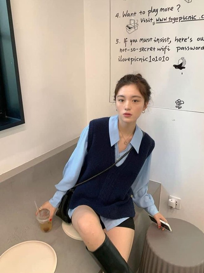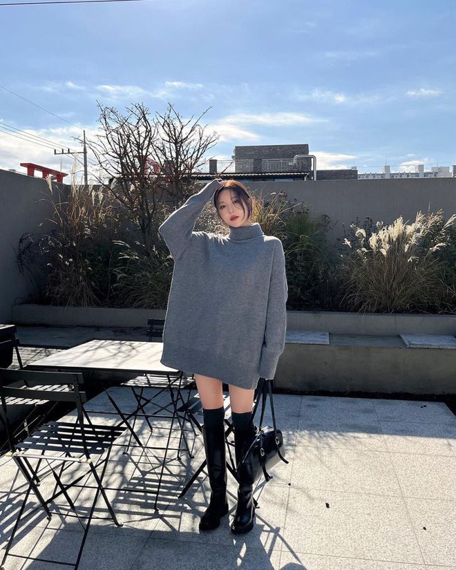 Áo len + quần short là công thức trẻ nhất và sành điệu nhất mà nàng không nên bỏ lỡ. Tuy nhiên, bạn cần chọn những chiếc áo len oversized và dài ngang hoặc qua hông, vì chúng sẽ trông đáng yêu hơn đó. Khi thời tiết trở lạnh, bạn chỉ cần phối thêm một đôi quần tất bên trong, sau đó diện thêm boots đùi để nâng tầm phong cách của bản thân. Cách phối đồ này phù hợp với rất nhiều hoàn cảnh khác nhau, giúp các chị em có thêm lựa chọn cho chính mình.