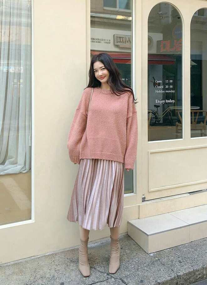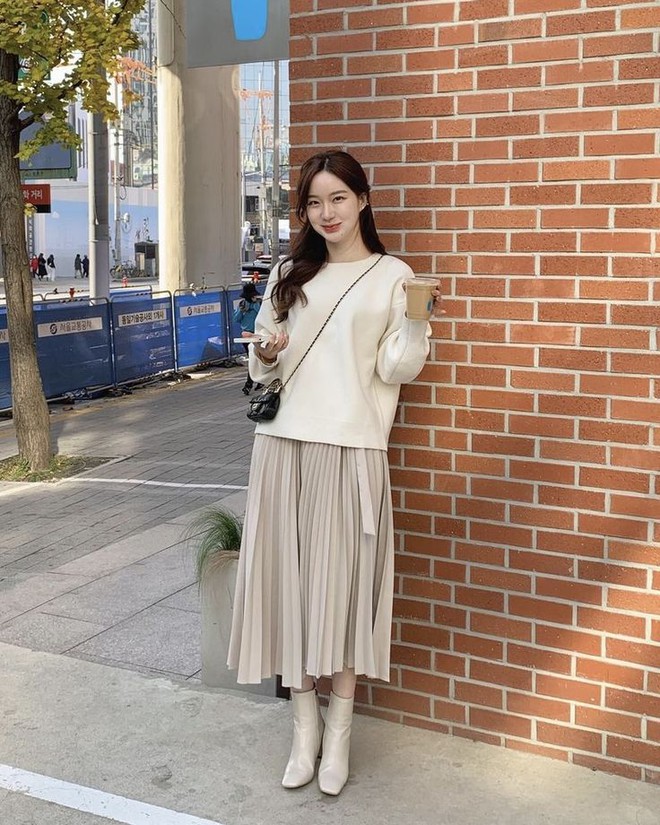 Nhắc đến những kiểu chân váy ''đắt hàng'' nhất mùa đông thì không thể bỏ qua chân váy dài xếp ly. Mẫu chân váy này sở hữu vẻ đẹp nhẹ nhàng, nữ tính và thướt tha. Khi được mix cùng áo len, chúng càng phát huy khả năng thu hút ánh nhìn, giúp người mặc ghi điểm duyên dáng trong mắt mọi người. Chưa hết đâu, chân váy xếp ly còn có độ phồng nhẹ nên những cô nàng sở hữu vòng 3 nhỏ nhất định phải lựa chọn để khắc phục nhược điểm này.