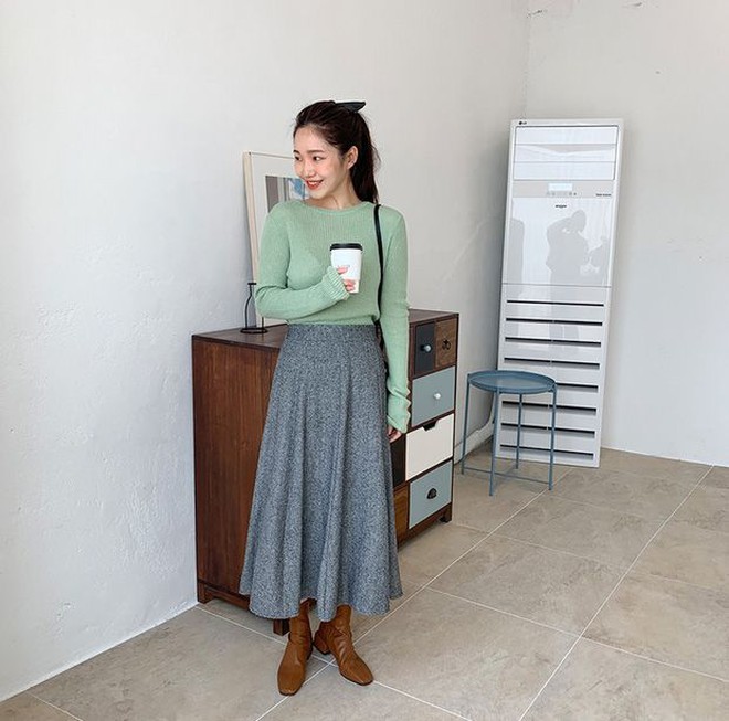 Item cuối cùng mà các chị em nên chi tiền để sắm về, đó chính là chân váy chữ A. Với kiểu dáng basic, item này không chỉ dễ mặc mà còn rất tôn chân. Khi mix cùng áo len, chúng sẽ trở thành ''cặp bài trùng'' hoàn hảo giúp chủ nhân trẻ ra vài tuổi và giúp vóc dáng trông cao ráo, thanh thoát hơn. Bạn có thể chọn mua chân váy chữ A bằng dạ, nhung vì chúng ấm áp hơn so với những chất liệu quen thuộc khác.