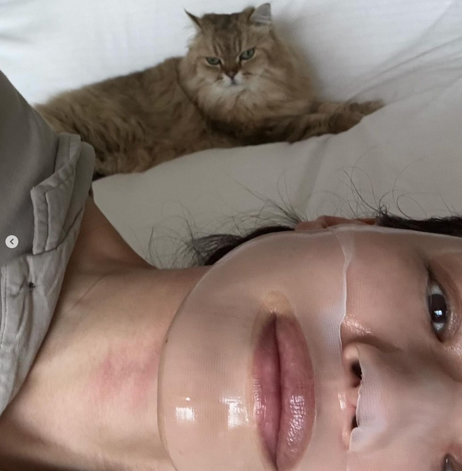 Do tính chất công việc nên nữ minh tinh thường xuyên phải thức khuya, vào những đêm không thể ngủ ngon, cô sẽ sử dụng "cứu tinh" là mặt nạ và kem dưỡng ẩm. Cô nàng thường thoa 1 lớp dày kem dưỡng, có tác dụng gần giống như mặt nạ ngủ để cấp ẩm cho da.
