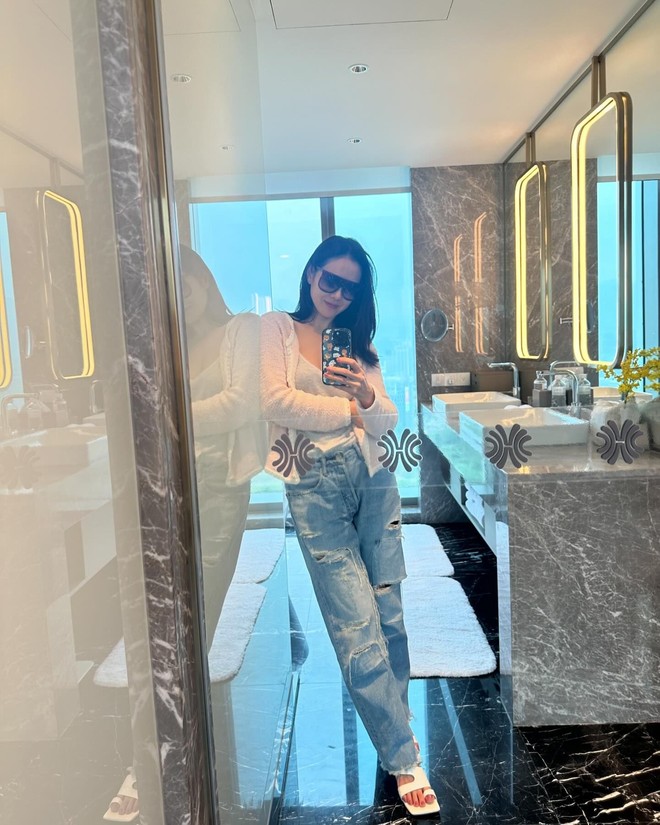 Ở độ tuổi 42, Son Ye Jin vẫn giữ vững phong độ nhan sắc tường thành. Ngoài ra, phong cách thời trang của cô còn có xu hướng trở nên trẻ trung, năng động hơn. Son Ye Jin không quá cầu kỳ khi lên đồ. Trang phục của cô chủ yếu xoay quanh những món thời trang đơn giản, có tính ứng dụng cao và giúp "hack" tuổi hiệu nghiệm.