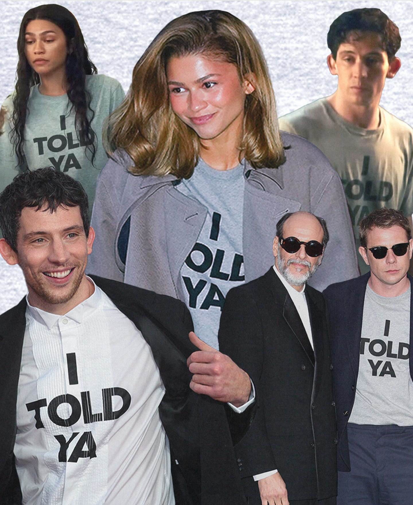 Một bức ảnh từ giữa những năm 1990 cho thấy cố tổng thống Mỹ John F. Kennedy Jr. đang chơi ném đĩa với chú chó chăn cừu Đức yêu quý của mình, Wolf, trong khi mặc chiếc áo phông có dòng chữ "I Told Ya". Chiếc áo có nét tương đồng đáng kể với chiếc trong bộ phim mới của Luca Guadagnino, Challengers, mà cả Zendaya và Josh O'Connor đều mặc. Đương nhiên, bức ảnh của JFK Jr. đã lan truyền trên internet và mạng xã hội chỉ sau vài giờ, khiến người hâm mộ đưa ra những so sánh song song giữa hai lần lặp lại cú phát bóng.