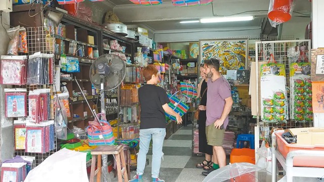 Một cặp du khách nước ngoài đã được nhìn thấy khi họ mua sắm tại một cửa hàng tạp hóa trên phố Tân Mỹ ở khu vực Trung Tây của Đài Nam. Họ tỏ ra rất thích thú với những chiếc túi cà chỉ treo trước cửa hàng và đã mua chúng với giá 200 Đài tệ (gần 160 nghìn đồng).