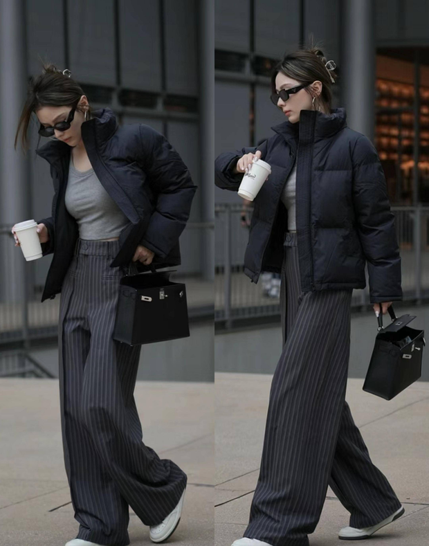 Tưởng đâu sự năng động và có phần to sụ của áo phao không hợp với nét chỉn chu của quần âu nhưng thực tế lại khác. Chính sự đôi lập ấy lại mang đến nét thời thượng sang chảnh và chỉn chu tuyệt đối cho nàng công sở trong đợt lạnh này.