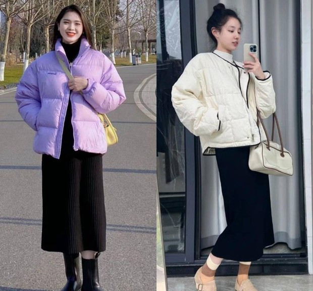 Áo phao + chân váy