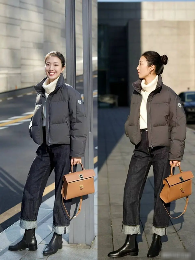 Áo phao + quần jeans