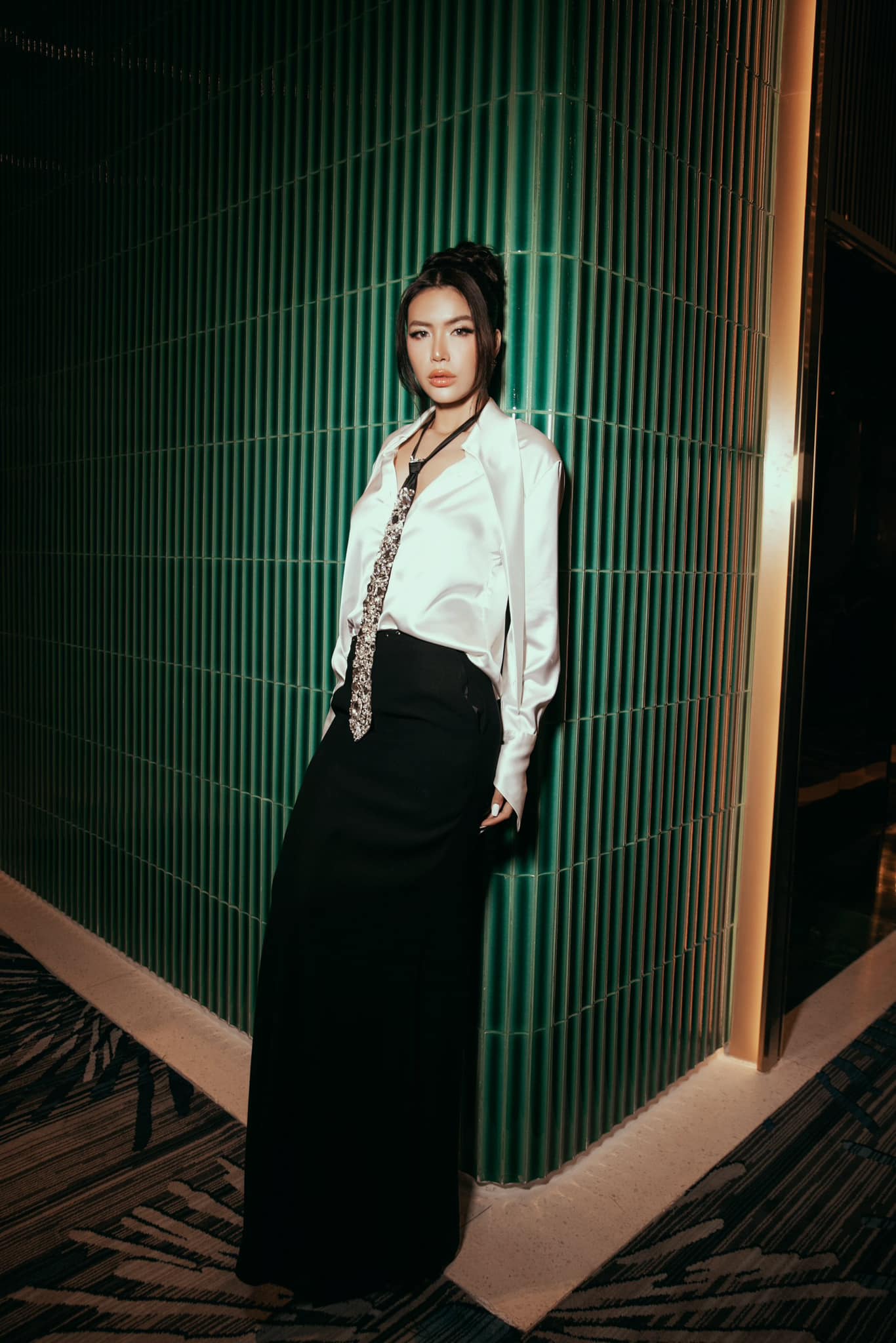 Quần âu là món đồ cơ bản thường thấy trong tủ đồ của các chị em, và Minh Tú cũng không phải ngoại lệ. Kiểu quần này ghi điểm ở sự thanh lịch, trang nhã và có thể kết hợp ăn ý với mọi mẫu áo trong tủ đồ.