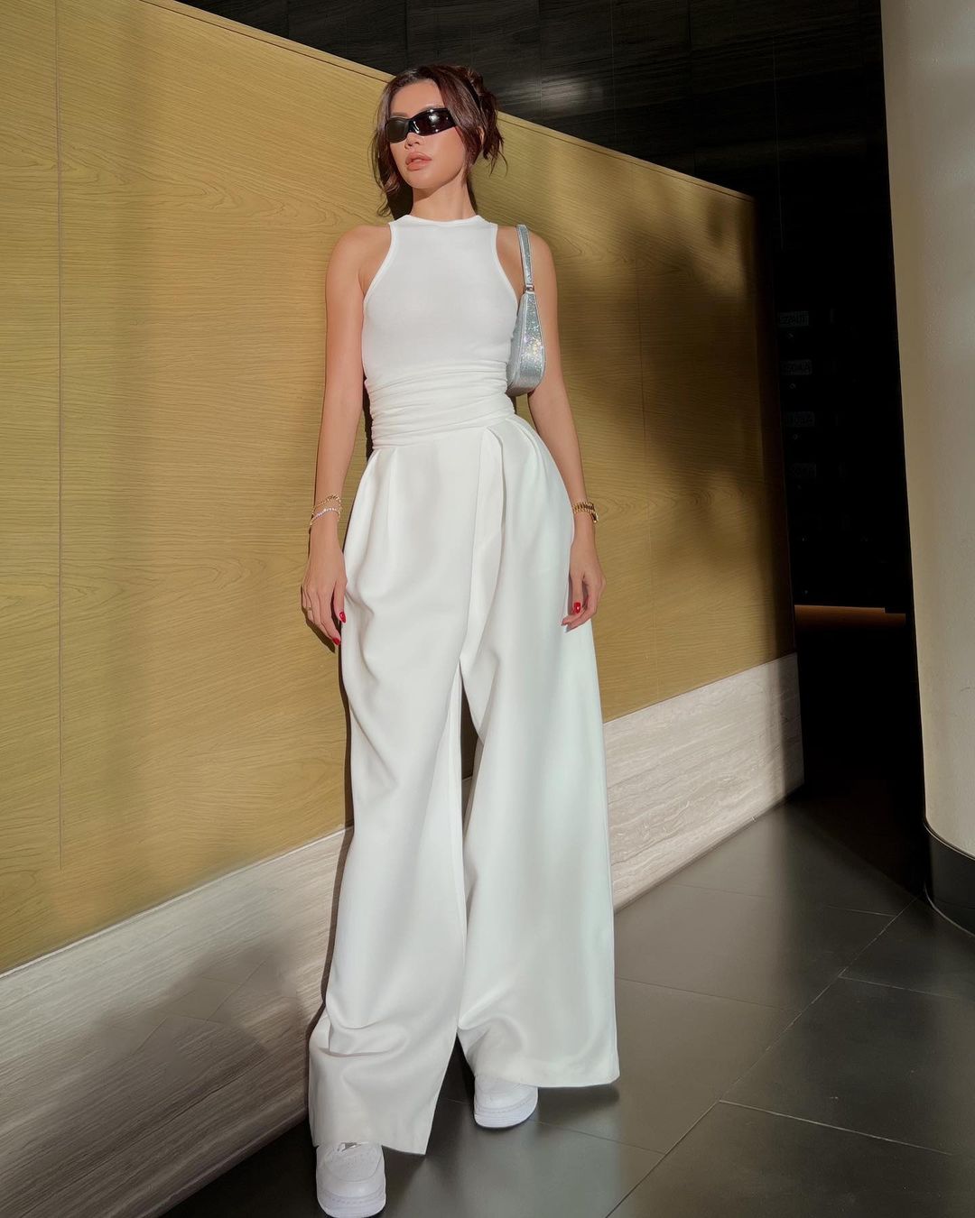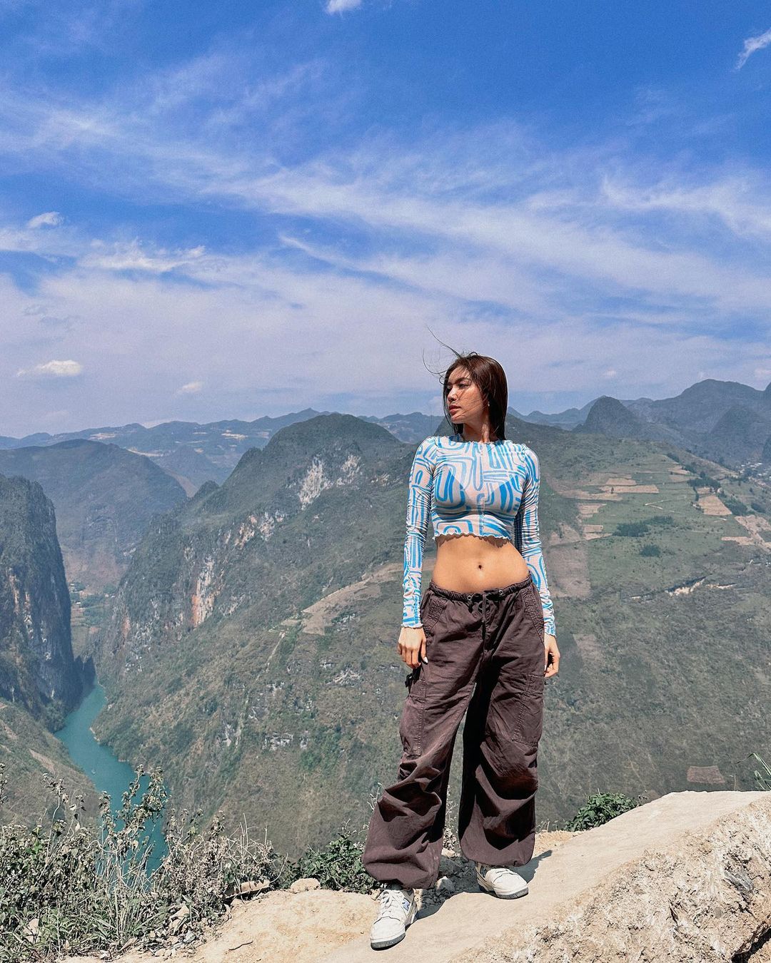 Trong những chuyến du lịch, Minh Tú lăng xê mẫu quần vải dù gọn nhẹ, dễ di chuyển. Sở hữu tỉ lệ cơ thể hoàn hảo, khi mix&match quần vải dù parachute cùng croptop, nàng siêu mẫu phô diễn triệt để được sắc vóc vạn người mê.