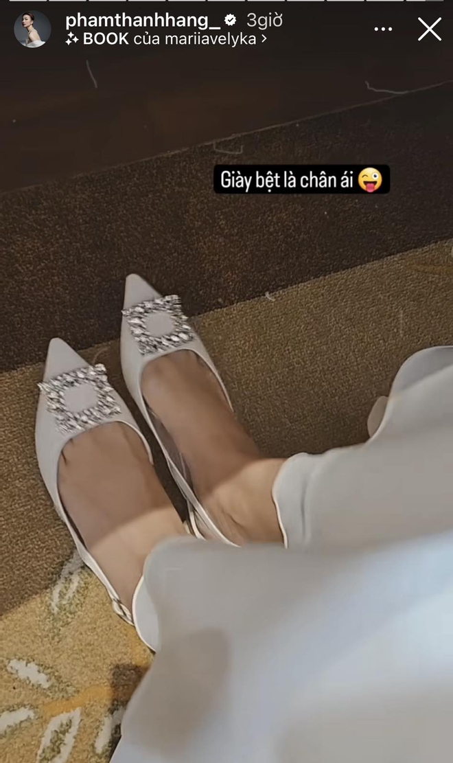 Sở hữu chiều cao 1m75 cùng đôi chân 1m12 trứ danh của làng mốt Việt, cô dâu Thanh Hằng không lựa chọn những đôi cao gót lênh khênh mà chỉ ưu ái một thiết kế giày bệt mang gam màu trắng sang trọng. Dù chỉ là một hành động rất nhỏ nhưng cũng thể hiện tình cảm của cô dành cho vị hôn phu của mình.
