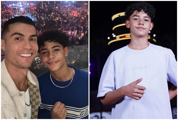 Mới đây, CR7 đã đăng tải bức ảnh chụp cùng với con trai cả Cristiano Jr khi cậu chính thức bước sang tuổi 14. Bức hình cho thấy, cậu thiếu niên này cao gần bằng cha, có gương mặt điển trai cùng mái tóc xoăn cá tính.