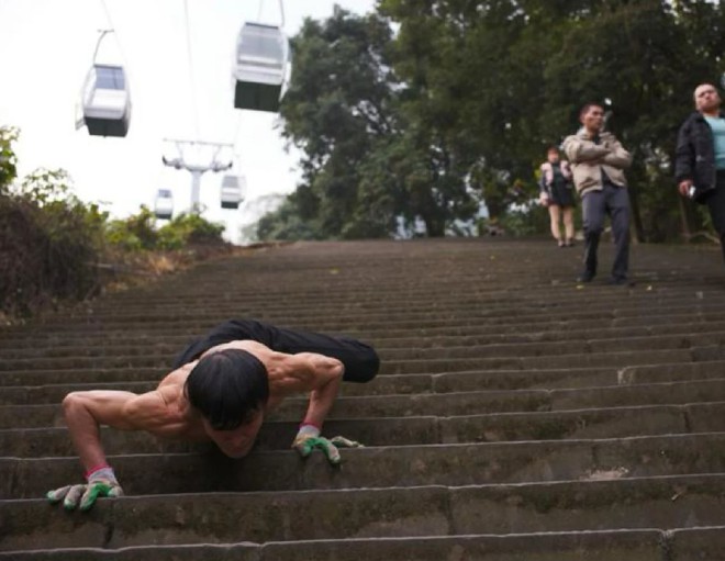Ông thường dành 1 giờ để leo lên và 50 phút để leo xuống 2.500 bậc thang đá chạy dọc sườn núi.