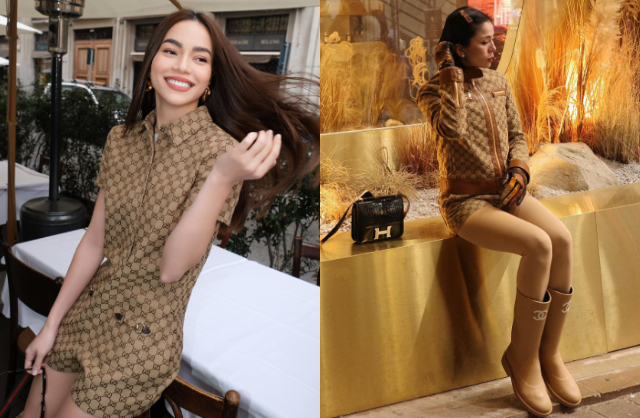 Sau khi Hồ Ngọc Hà chia sẻ bộ ảnh, trên mạng xã hội, các netizen bỗng đồng loạt bày tỏ bộ đồ Hồ Ngọc Hà diện sao thấy quen quen. Hóa ra, cách đây một tuần, khán giả từng nhìn thấy Lệ Quyên khoác lên người bộ trang phục có họa tiết in logo Gucci như Hồ Ngọc Hà. Ngay lập tức, hình ảnh của họ được đặt lên bàn cân.