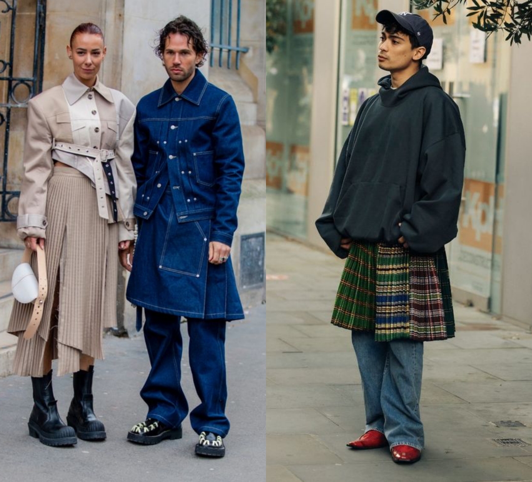 Hòa chung vào xu thế đó, Năm 2023, nhiều thương hiệu đã giúp gắn kết câu chuyện về giới tính giữa nam và nữ thông qua những thiết kế trên sàn diễn. Điều này tạo nên vẻ đẹp của sự nam tính mới trong ngành thời trang. Làn sóng xóa nhòa định kiến về giới tính được các nhà thiết kế tiếp tục kể bằng xu hướng áo cắt xẻ, để lộ hình thể gợi cảm dành cho nam giới hay cách tạo nên những chiếc váy dành riêng cho đàn ông.