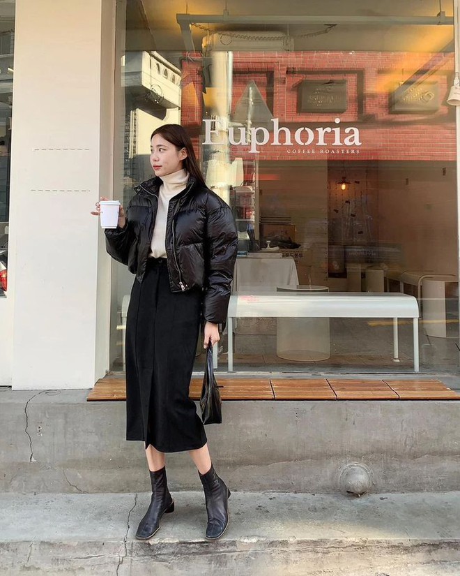 Cách mix cuối cùng chắc chắn sẽ làm hài lòng những cô nàng mùa đông, đó chính là áo khoác phao + áo len cổ cao. Bạn nên lựa chọn các gam màu trung tính như đen, be, nâu, trắng,... để việc mix&match trở nên đơn giản và nhanh chóng hơn nhé.