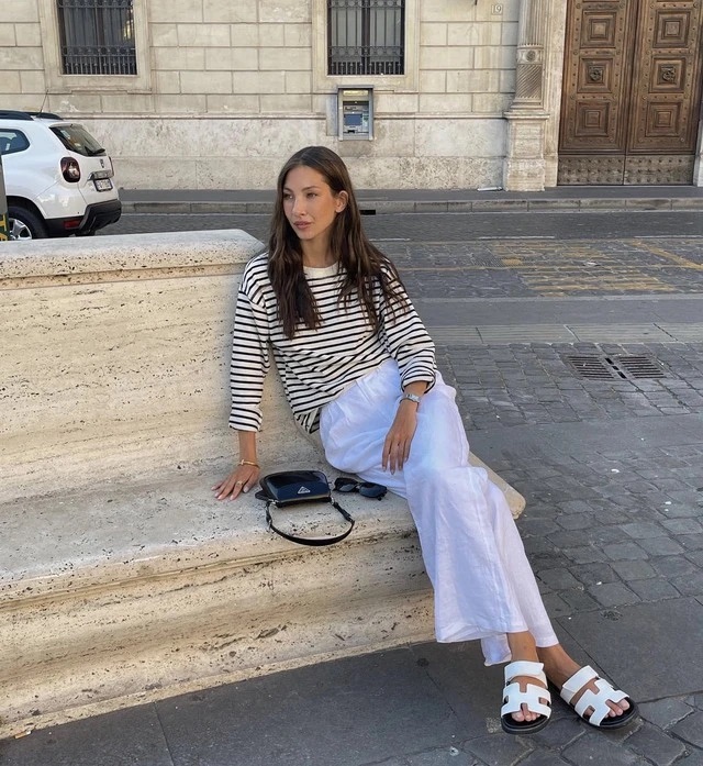 Đặc biệt vào những ngày hè, sandal là sự lựa chọn không thể thiếu để tạo nên vẻ ngoài thanh lịch, tinh tế của các cô gái Pháp, Dù là sandal quai ngang, sandal đế bệt hay sandal cao gót, chúng đều mang đến sự thoải mái, thoáng mát cho người diện. Sandal cũng dễ để mix&match cùng nhiều kiểu outfit, tạo ra các phong cách đa dạng khác nhau.