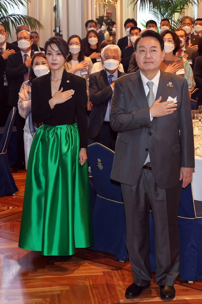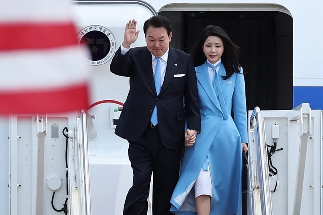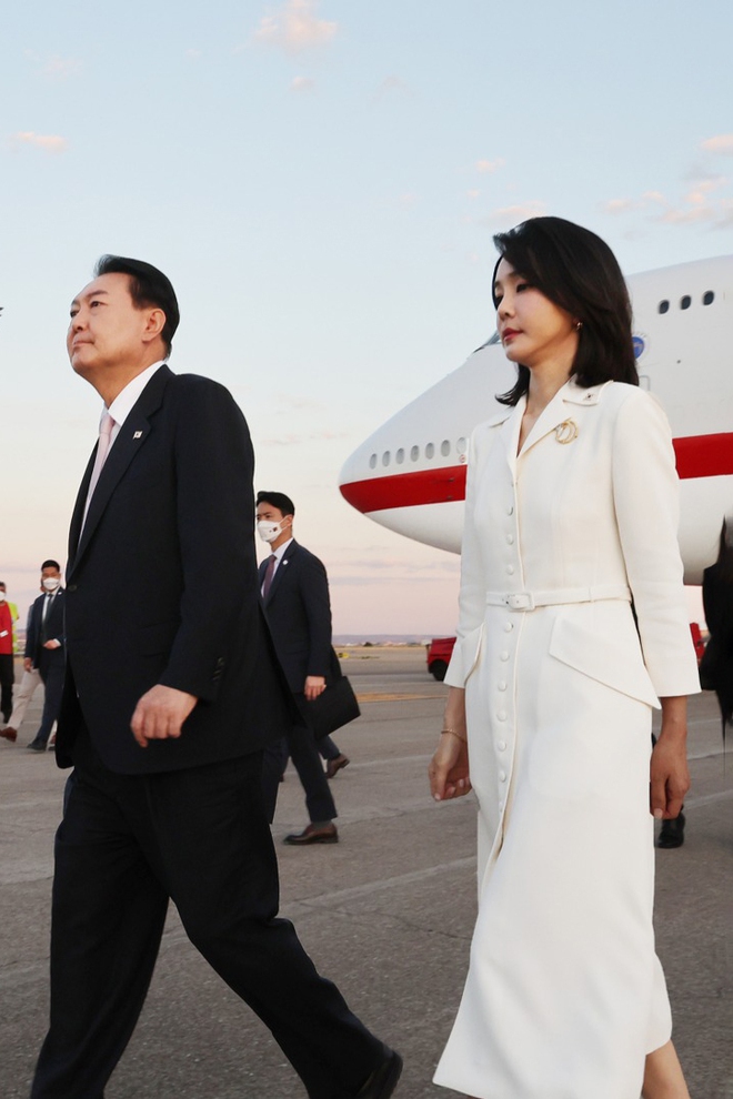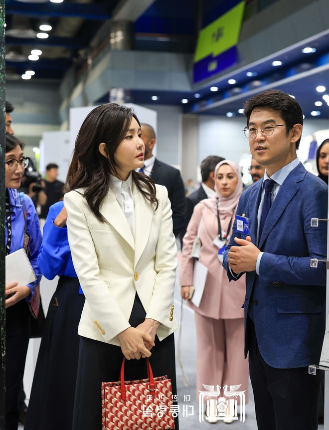 Đồng hành cùng chồng trong những chuyến công du, bà Kim Keon Hee luôn ghi điểm với khí chất cùng thần thái tự tin, thanh tao. Khi đứng cạnh nhiều tên tuổi quyền lực, ngôi sao nổi tiếng, Đệ nhất phu nhân không hề bị "lép vế".