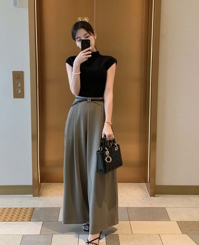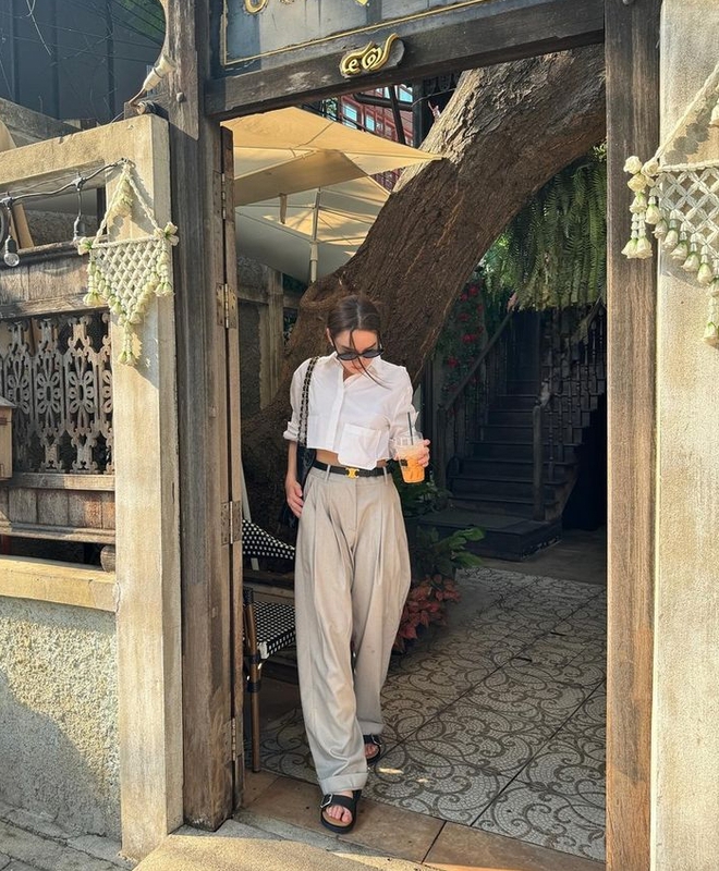 Chị em văn phòng có 1 công thức mặc đẹp bất bại đó là sơ mi + quần ống rộng. 2 món đồ basic khi phối cùng nhau sẽ tạo nên 1 set đồ "over hợp", vừa mát mẻ vừa lịch sự lại vô cùng nịnh mắt. Nếu muốn làm mới phong cách thì nàng có thể diện sơ mi dáng crop top kết hợp cùng quần ống rộng cạp cao, và đừng quên mix thêm 1 em thắt lưng bản nhỏ để tạo điểm nhấn. Chắc chắn outfit này sẽ giúp nàng có được diện mạo sành điệu, yêu kiều nhưng vẫn phù hợp với môi trường công sở.