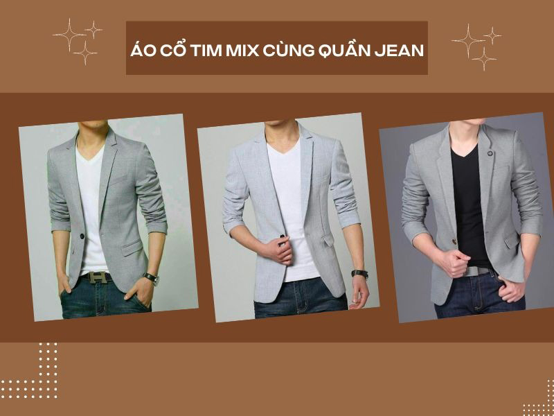 Áo cổ tim và quần jean là sự kết hợp thời trang đơn giản nhưng ấn tượng. Áo cổ tim trắng với quần jean xanh đậm tạo sự cân đối và sang trọng. Áo cổ tim đen với quần jean rách tạo vẻ ngoài năng động và cá tính.