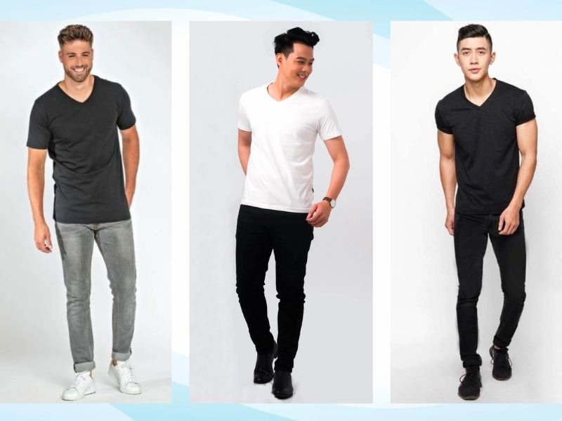 Những cách phối đồ với áo thun cổ tim nam ấn tượng nhất 2024