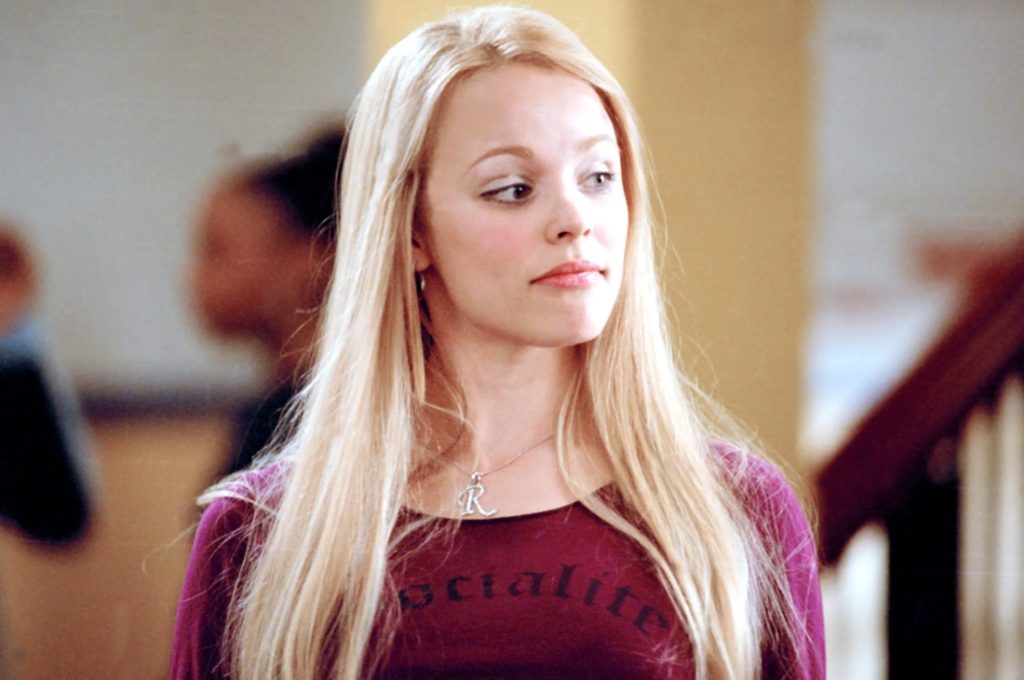 Nhân vật Regina George do Rachel McAdams thủ vai, nổi bật với vẻ ngoài kiêu kỳ đúng phong thái của một tiểu thư nhà giàu. Hóa thân thành nữ sinh học đường trong bộ phim Mean girls, Regina George đã tạo nên thương hiệu cho riêng mình với mái tóc màu vàng óng ả và duỗi thẳng. Kiểu tóc này đã giúp toát lên nét đỏng đảnh của nhân vật, trở thành biểu tượng đặc biệt và là nguồn cảm hứng làm đẹp cho giới trẻ.