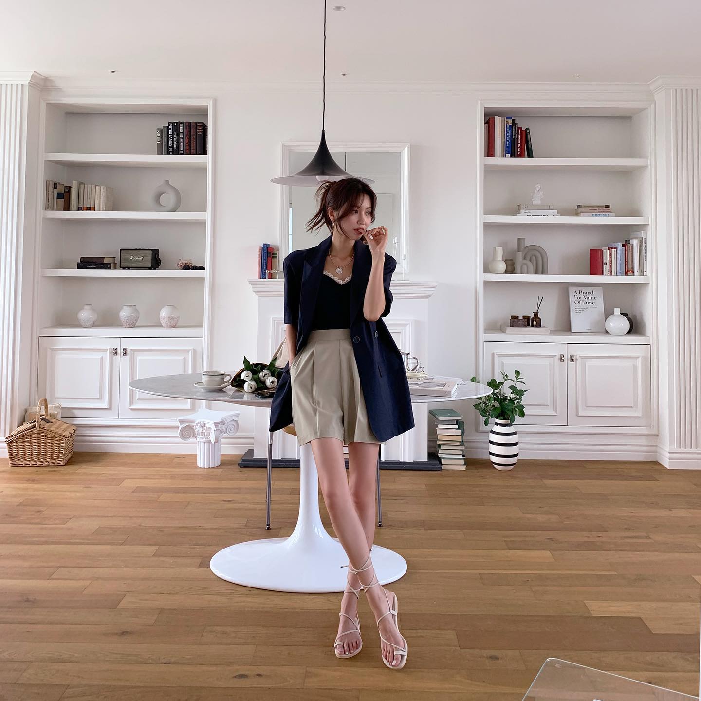 Ngay cả khi chọn sandal quai mảnh đế bệt, vóc dáng của chị em vẫn được cải thiện hiệu quả. Sandal quai mảnh còn cộng thêm điểm tinh tế, trang nhã cho các set trang phục dáng ngắn, chị em càng có thêm lý do để chọn diện.