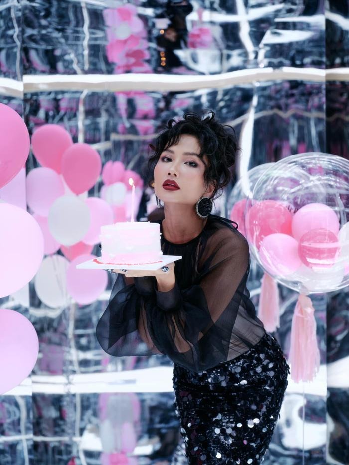 Hoa hậu Hoàn vũ Việt Nam 2017 đã diện chiếc váy này vào dịp sinh nhật được diễn ra hồi tháng 5. Cô gây ấn tượng với màu son đỏ, cùng kiểu tóc uốn xoăn búi cao tạo nên một hình ảnh nữ minh tinh đầy quyến rũ và không kém phần ma mị.