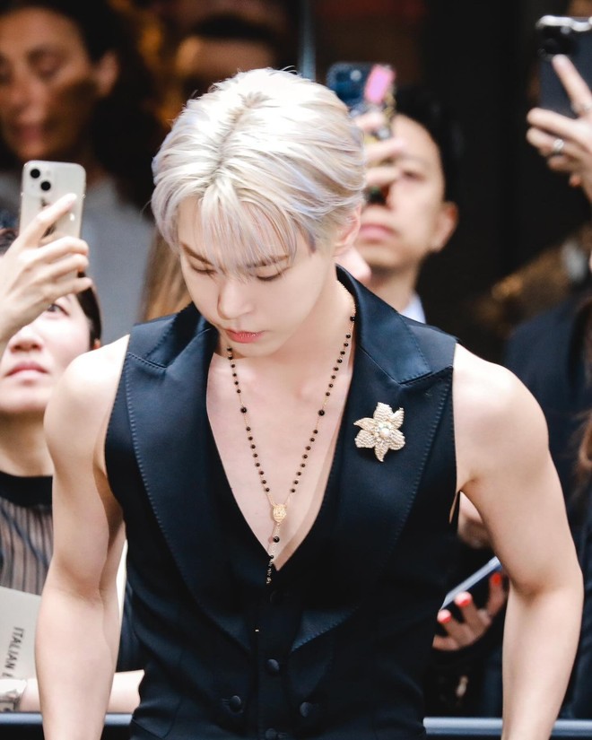 Do Young xuất hiện tại show diễn với mái tóc bạch kim cá tính thu hút ống kính truyền thông.