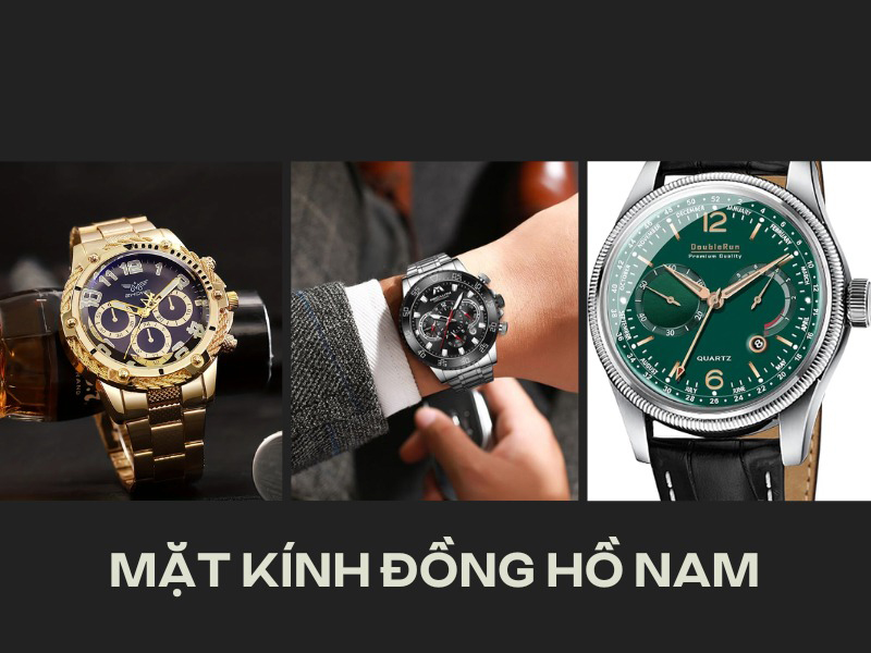 -Mặt kính: Tuy có 4 loại mặt kính thường được sử dụng cho đồng hồ đeo tay là Mica, Hardlex, Mineral Crystal và Sapphire, nhưng trên thị trường hiện nay chỉ có 2 loại mặt kính đồng hồ phổ biến đó là kính cứng (Mineral Crystal) và kính Sapphire.