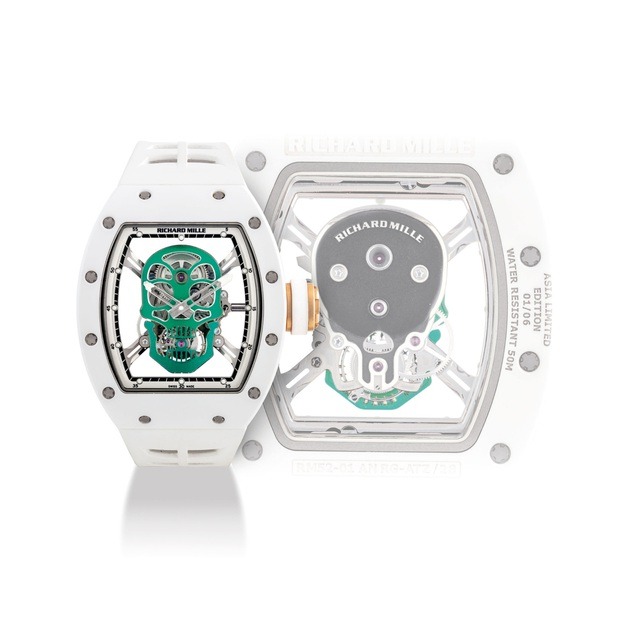 RM52 Tourbillon Skull là ví dụ khác cho câu chuyện khan hiếm. Thiết kế mang số hiệu "01" (trong 6 mẫu) là phiên bản giới hạn, được làm bằng gốm trắng cực kỳ hiếm và vàng hồng 18K, đặc biệt cho thị trường châu Á. Nó được bán với giá gần 15,5 tỷ đồng tại Hồng Kông (Trung Quốc) trong phiên đấu giá năm 2019. Nó là một trong những chiếc đồng hồ đặc biệt và được thèm muốn nhất của thương hiệu Thuỵ Sĩ.