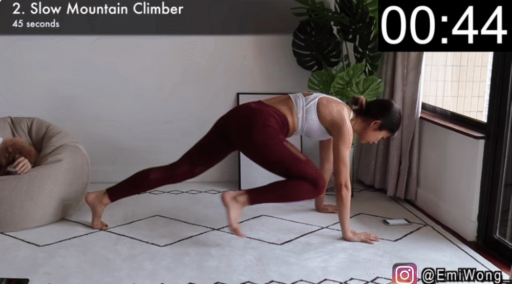 Động tác plank leo núi: 45 giây