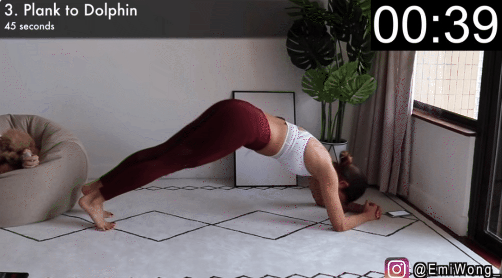 Động tác plank cá heo: 45 giây