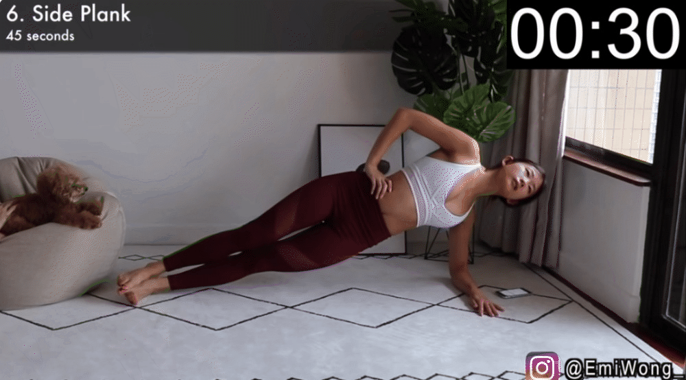 Động tác plank nghiêng: 45 giây