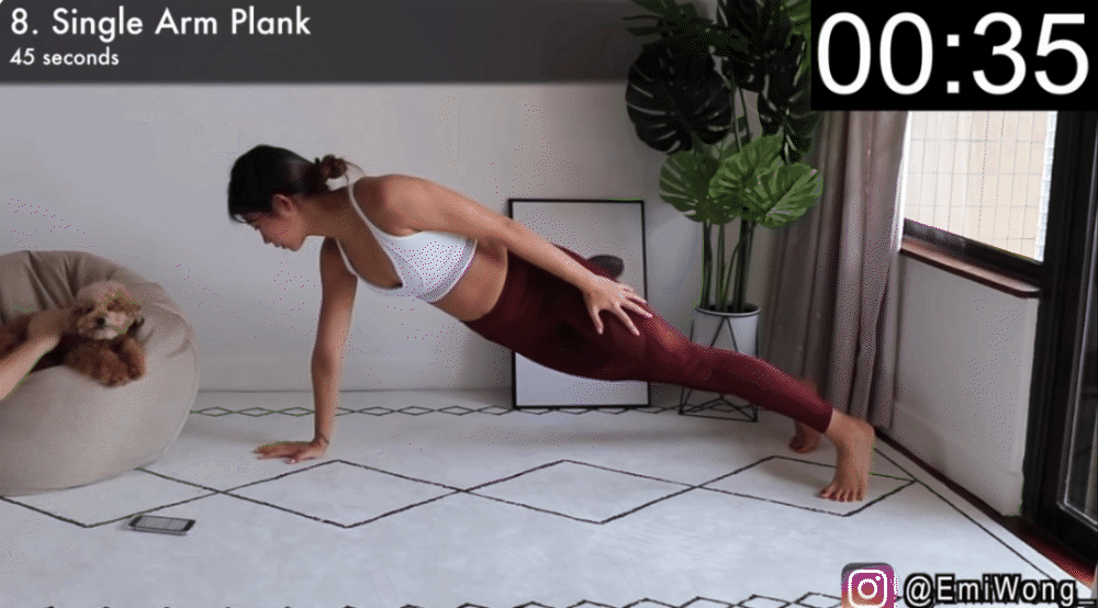 Động tác plank tay đơn: 45 giây