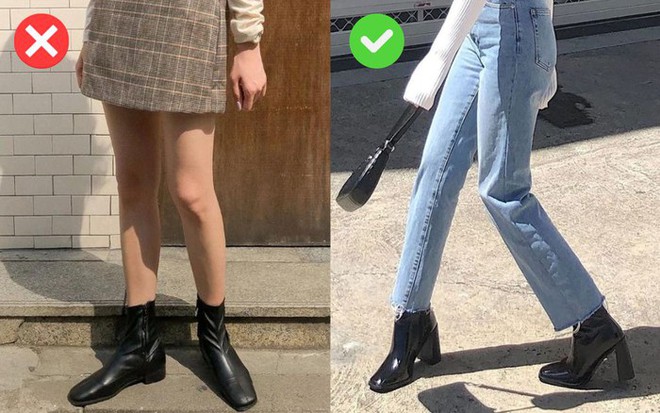 Ai có ý định sắm boots mũi vuông đế bệt để diện thì nên suy nghĩ lại ngay. Lý do là bởi, phần mũi vuông của mẫu boots này sẽ khiến bạn trông thấp hơn, đôi chân sẽ trông ngắn lại. Do đó, các cô nàng có chiều cao khiêm tốn nhất định phải tránh xa. Thay vào đó, bạn nên mua boots mũi tròn hoặc mũi nhọn, 2 kiểu boots này sẽ giúp chị em cải thiện vóc dáng của mình.