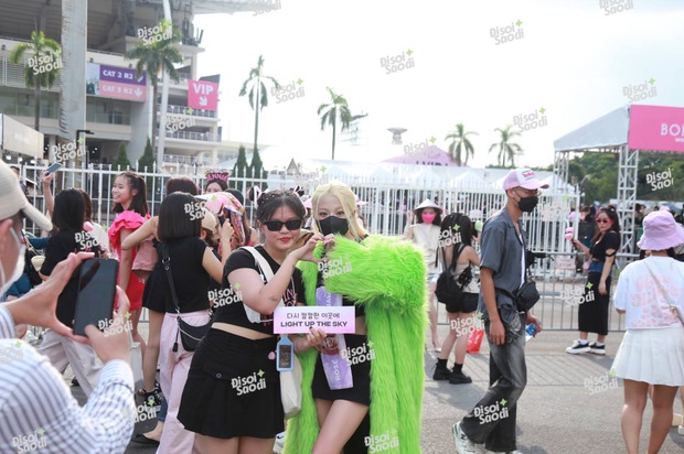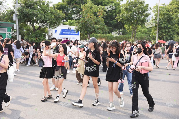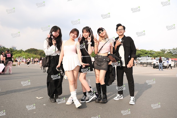 Ngắm nhanh 1 loạt ảnh từ "team qua đường", dễ dàng nhận thấy bạn trẻ nào cũng xuất hiện với diện mạo tươi tắn cùng những layout makeup cực xinh và bắt mắt. Bên cạnh đó, outfit “đi đu idol" là điều được quan tâm hơn cả. Không khó nhận ra những trang phục có gam màu đen - hồng được các bạn trẻ ưu ái rất nhiều hơn, bởi vì đây là tông màu đặc trưng của 4 cô nàng Hắc Hường.