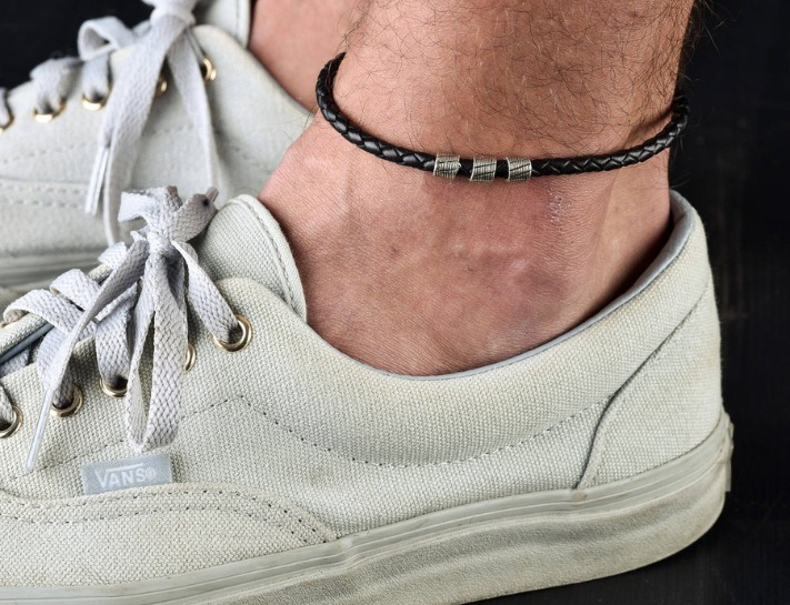 Vòng chân nam từ da là thiết kế rất độc đáo, được nhiều người yêu thích trong thời gian gần đây. Thay vì sử dụng những chất liệu có phần quen thuộc như vàng, bạc hay đá thì da lại gây được ấn tượng mạnh mẽ với những thiết kế cá tính, năng động và vô cùng khỏe khoắn, hợp vibe cánh mày râu.