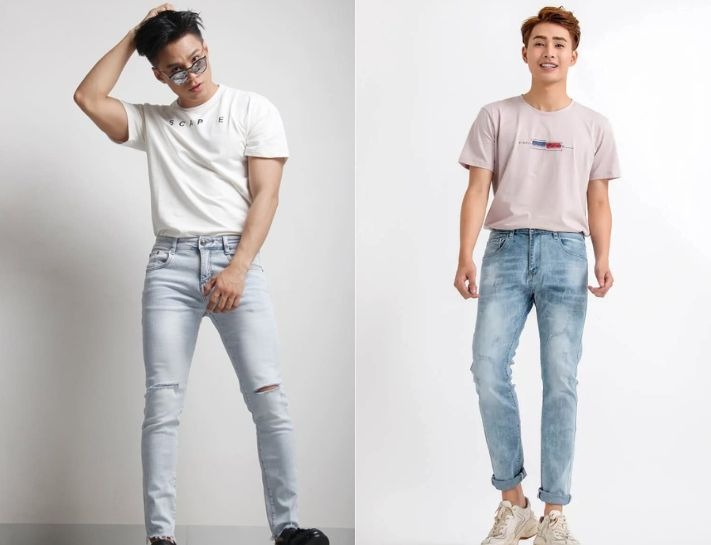 Đây là outfit basic, dễ phối đồ và phù hợp cho mọi hoạt động. Bạn có thể lựa chọn áo thun trơn hoặc in họa tiết, kết hợp với quần jeans skinny, slim fit hoặc regular fit. Phụ kiện đi kèm bao gồm giày, mũ lưỡi trai, balo. Chọn quần jeans với áo thun trái màu để tạo sự nổi bật, ngoài ra đối với những chàng trai cá tính, thay vì chọn mẫu jeans trơn bạn có thể dùng jeans rách hoặc jeans kèm họa tiết thay thế.