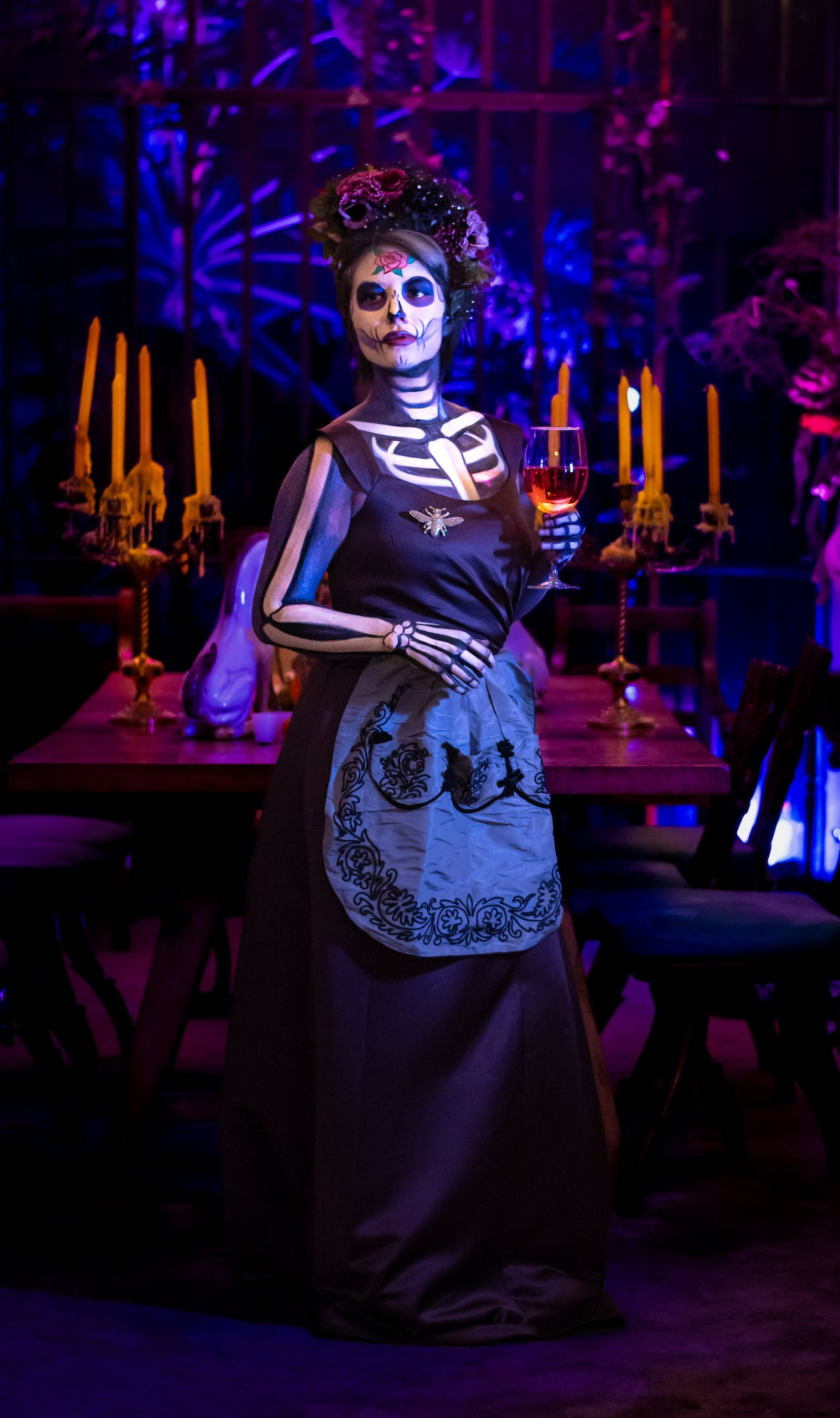 Nếu muốn rùng rợn và đáng sợ hơn, các bạn có thể hóa thân thành nhân vật Valak với khuôn mặt trắng bệch, đôi mắt, môi thâm đen trong bộ đồ thầy tu…
