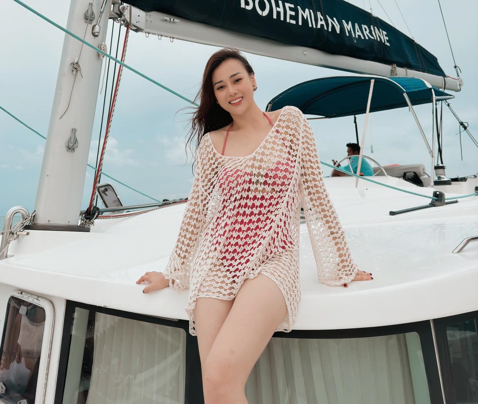 Mới đây trên trang Facebook cá nhân, Phương Oanh gây chú ý khi đăng tải loạt ảnh diện bikini, tạo dáng trên du thuyền. Trong hình, người đẹp quê Hà Nam phối đồ bơi màu cam với áo lưới bên ngoài. Trong trang phục "nửa kín nửa hở", Phương Oanh vẫn khoe khéo được thân hình gợi cảm, thần thái đầy cuốn hút.