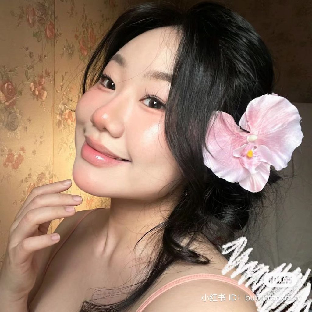 Mặc dù không phải là bước trang điểm nhưng kẹp tóc hoa lan là điều kiện không thể thiếu để hoàn thiện phong cách makeup hoa lan hồ điệp đang “làm mưa làm gió” khắp nền tảng mạng xã hội. Kẹp tóc hoa lan hồ điệp được cài một bên trên mái tóc mây mềm nữ tính. Bạn có thể phối kẹp hoa với kiểu tóc bới thấp, tóc thắt bím hoặc bung xõa tự do để khoe mái tóc mượt mà. Điểm nhấn là chiếc kẹp hoa lan hồ điệp trên mái tóc nhằm tôn vinh lên nét mộc mạc, ngọt ngào và đáng yêu từ khí chất sẵn có của phái nữ.